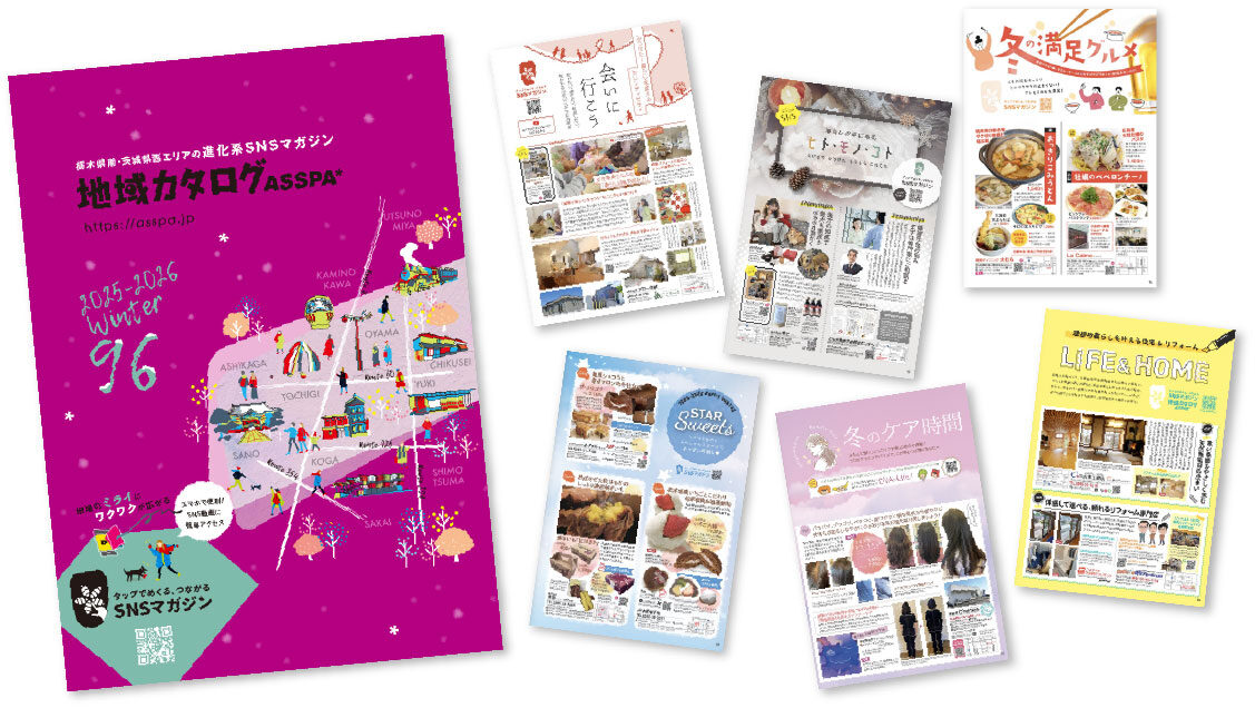 栃木県南・茨城県西エリアのタップでめくる、つながるSNSマガジン 地域カタログASSPA* Vol.95 秋号がデジタルカタログになりました。